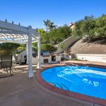 The generous backyard features a sparkling pool and spa, and an outdoor cooking area.